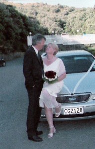 At a bead shop in town, I’d made some pretty seed pearl drop earrings to go with my cream, handkerchief hemmed dress, and was very pleased with them. But the evening before the wedding Warwick presented me with a beautiful, real pearl necklace! A hurried delve into my jewellery box unearthed some faux pearl earrings my late mother had bought years before. They looked real enough – much better than the seed pearls would have. A year later, Warwick gave me matching pearl earrings for a first anniversary present.